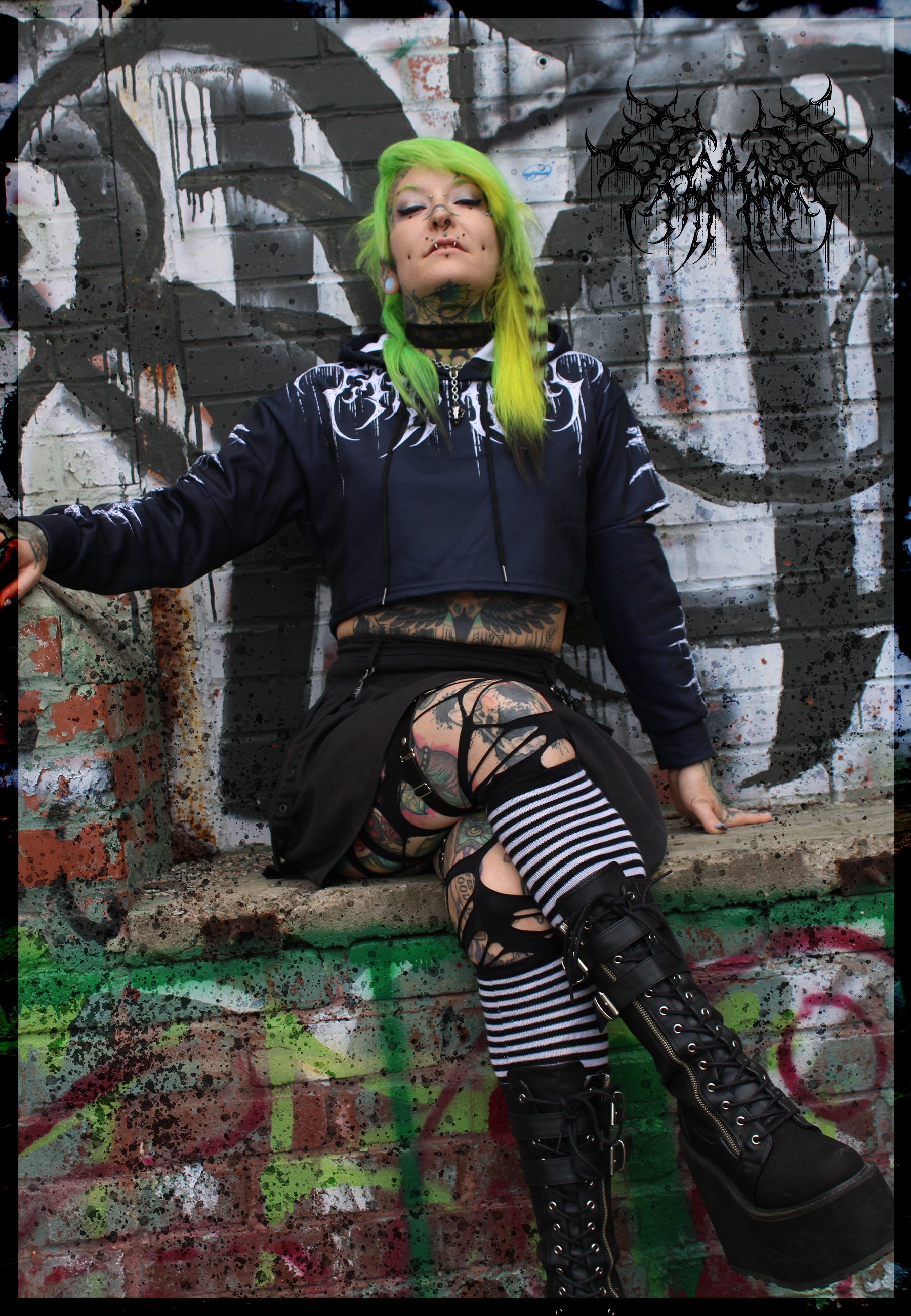 Cropped short so it cuts sharp, this piece doesn’t just fit, it marks. It’s equal parts dream and nightmare: too sweet to ignore, too rotten to forget. Limited run, never repeated. Once it’s gone, it stays buried. Step into the decay, wear the bloom of rot, and let beauty fester on you.
